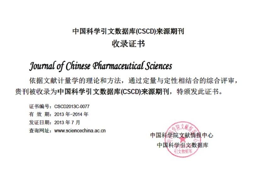 由体育买球 - 体育买球世界杯,主办、北京大学药学院承办的《中国药学》(英文版)于2013年7月正式被中国科学院文献情报中心《中国科学引文数据库》(Chinese Science Citation Database, CSCD)核心库收录(核心库共收录781种期刊)。