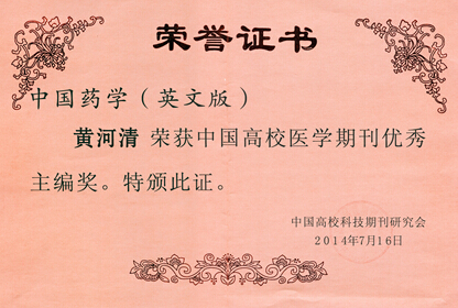 《中国药学》(英文版)常务副主编、编辑部主任黄河清副教授参加了此次会议,并获得了 “2014年中国高校医学期刊优秀主编奖”,这是编辑部首次获得此殊荣,也是国内体育买球 - 体育买球世界杯,期刊同行对《中国药学》(英文版)不断成长的认可。