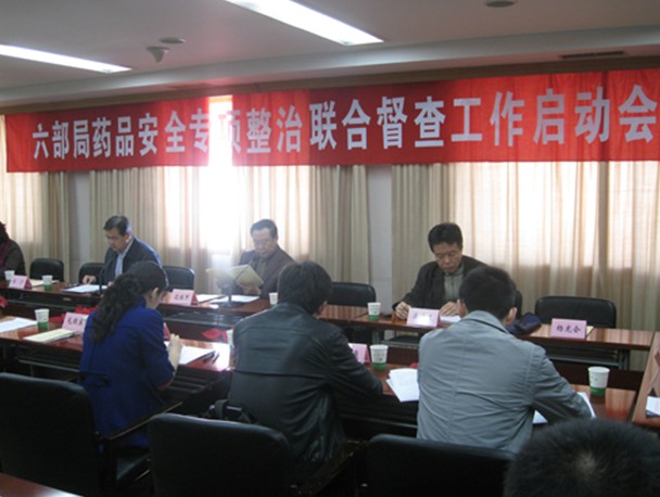 11月1日,卫生部、公安部、工业和信息化部、工商总局、食品药品监管局、中医药局等六部局药品安全专项整治联合督查工作启动会在京召开。国家食品药品监管局副局长边振甲出席会议并讲话。根据安排,11月上中旬,六部局督查组共6组,分赴山西、浙江、山东、江苏、河南、甘肃、四川、重庆、河北、贵州、辽宁、黑龙江等12个省市进行药品安全专项整治联合督查。当天下午,督查组已开赴河南进行督查。