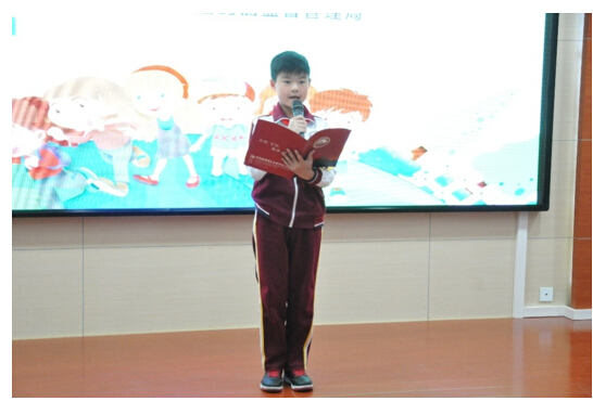 首都经济贸易大学附属小学胡炀同学作为儿童安全用药科普小使者代表,在启动仪式上讲述安全用药的自身经历和基本知识。