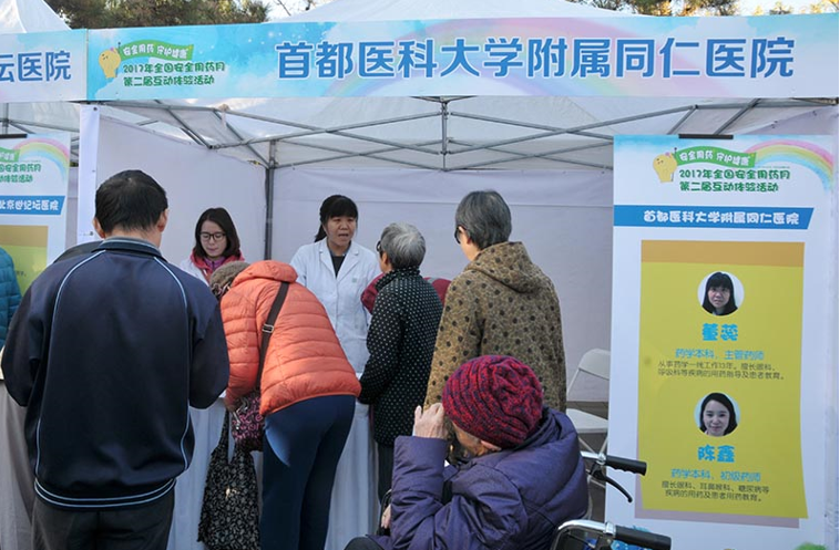 北京协和医院、北京医院、中国医学科学院肿瘤医院、北京中医药大学东直门医院、解放军总医院第一附属医院、首都医科大学附属宣武医院、首都医科大学附属北京朝阳医院、首都医科大学附属北京同仁医院、首都医科大学附属北京世纪坛医院、首都医科大学附属北京安贞医院大屯社区卫生服务中心等十家医疗机构的临床药师现场接受公众用药咨询,答疑解惑。