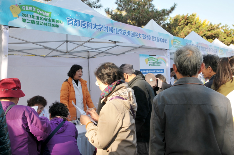 首都医科大学附属北京安贞医院大屯社区卫生服务中心的药师为公众咨询
