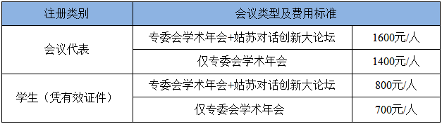 “姑苏对话”创新大论坛注册费用为500元/人。同时参加专委会学术年会及“姑苏对话”创新大论坛的代表可享受优惠注册费1600元/人,学生800元/人。