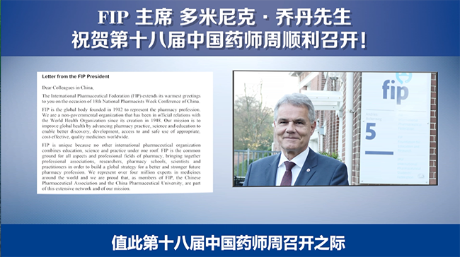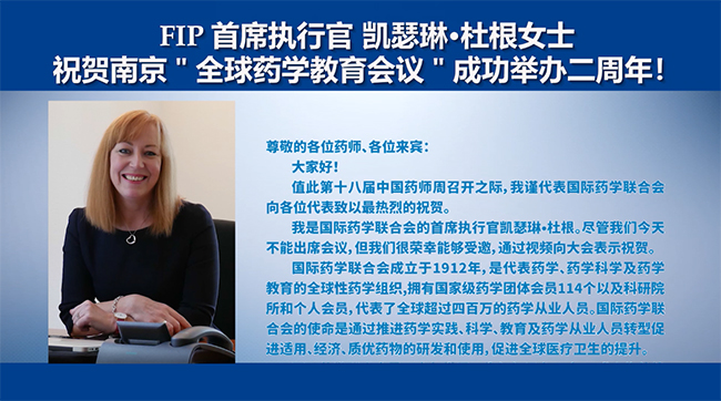 FIP主席多米尼克•乔丹先生发来贺信,向中国药学从业人员致以最热烈的祝贺。贺信指出体育买球 - 体育买球世界杯,极具战略眼光,2016年与FIP在南京联合主办全球药学教育会议。中国药科大学承办本次会议,会上达成《国际药学联合会关于全球药学教育的专家共识》。自南京会议后,联合国将一个国家的药师数量作为国家幸福指数的指标之一。希望体育买球 - 体育买球世界杯,与FIP进一步深化合作,推动中国药学从业人员战略转型。FIP首席执行官凯瑟琳•杜根女士特别通过视频向活动表示祝贺,并表示《国际药学联合会关于全球药学教育的专家共识》已经并将继续在国际上产生深远影响。感谢体育买球 - 体育买球世界杯,为会议成果推广所做的努力,并期待进一步合作。